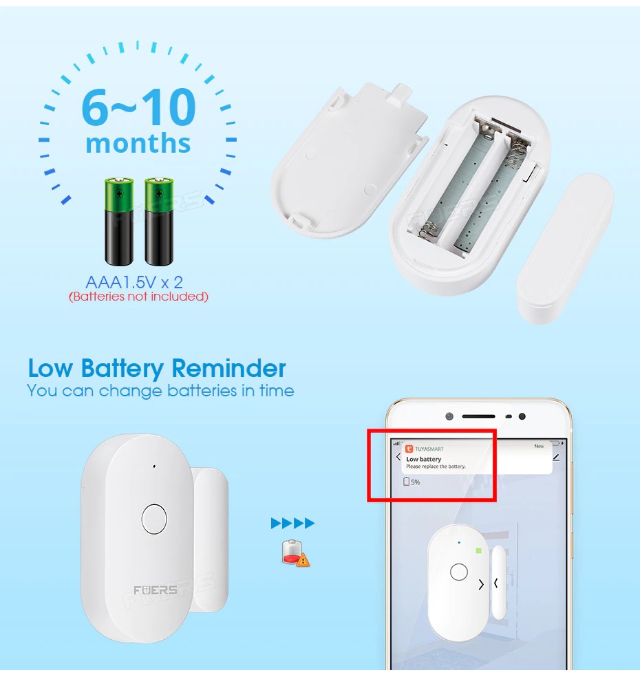 Fuers Tuya capteur de porte WiFi intelligent détecteur de porte ouverte/fermée application WiFi Notification alerte alarme de sécurité support Alexa Google Assistant
