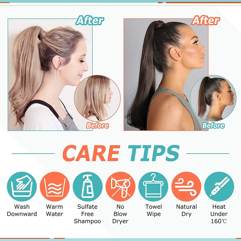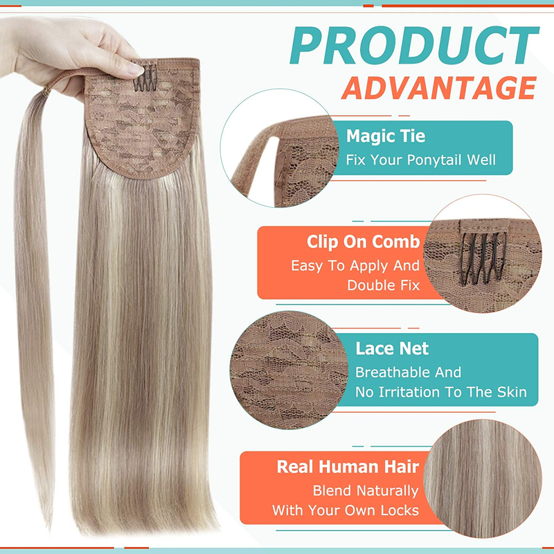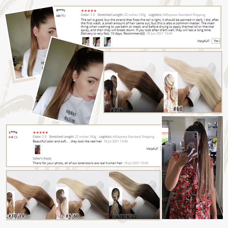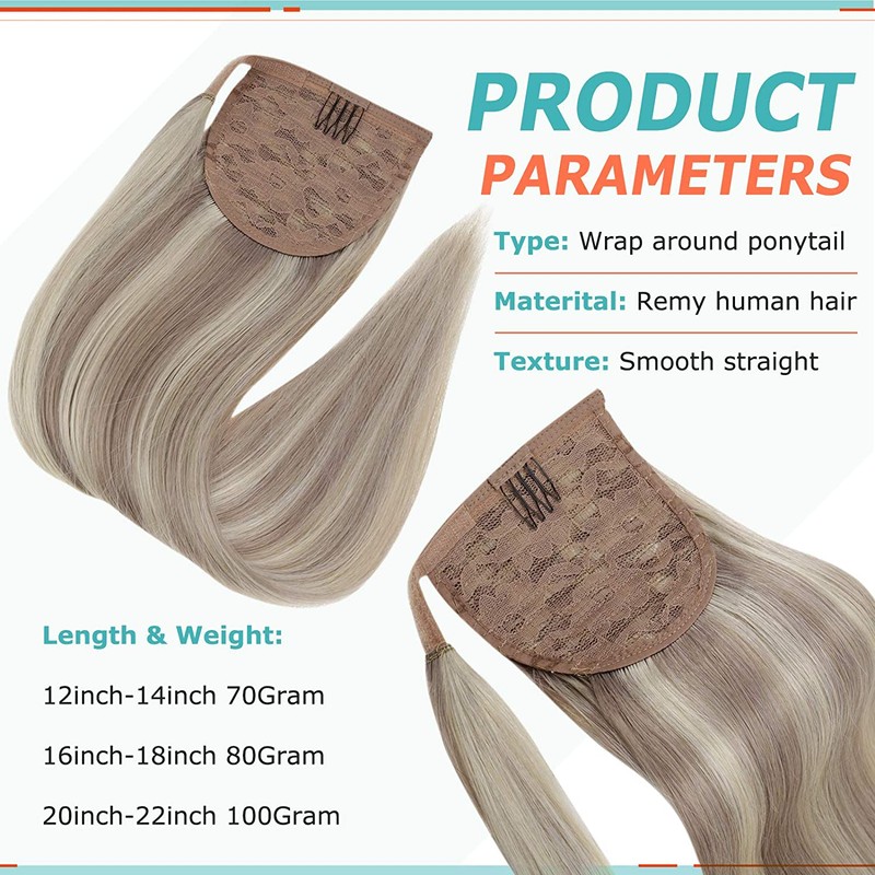 1. Nom du produit: 100% Extensions de queue de cheval de cheveux humains Remy