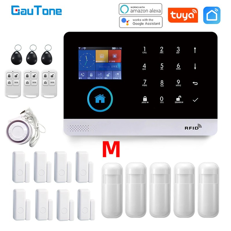 GAUTON – Système d'alarme de sécurité domestique PG103, GSM 433MHz, sans fil Wi-Fi, pour maison connectée Tuya, contrôle via application, système anti-cambriolage