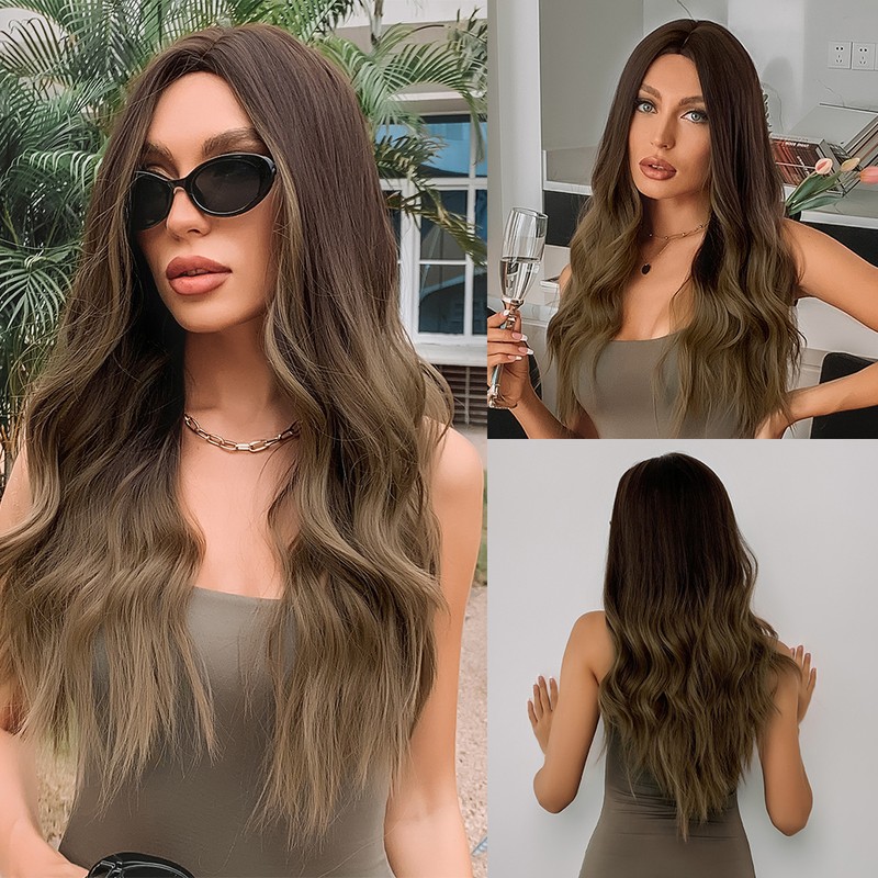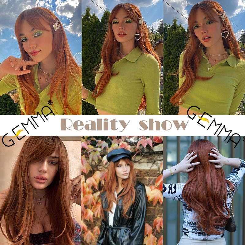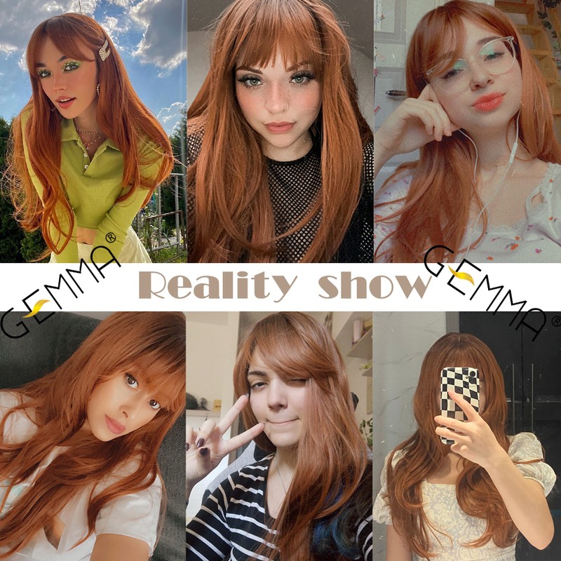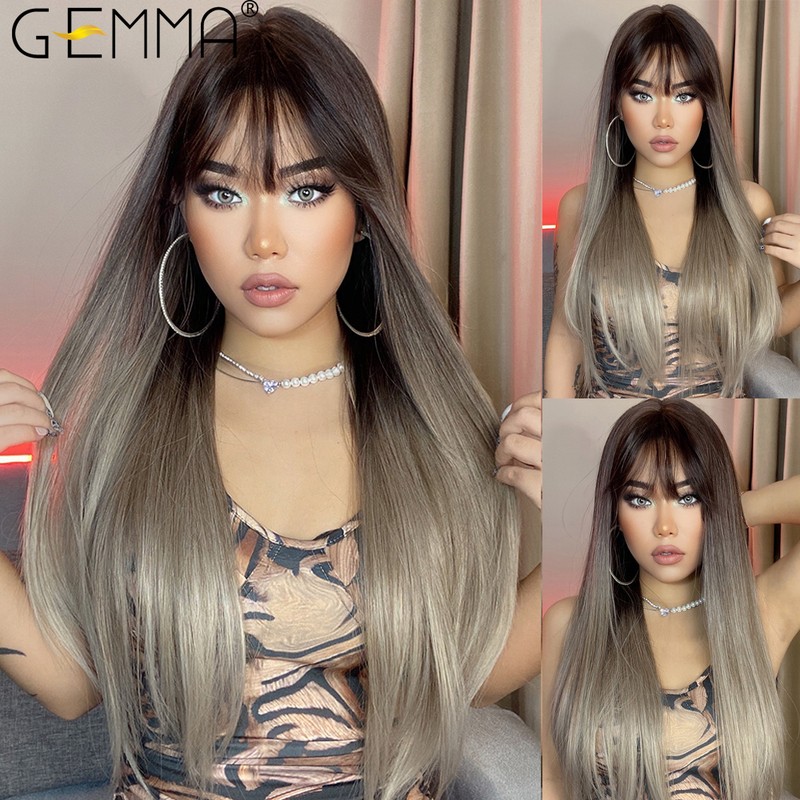 GEMMA – perruque synthétique lisse et longue avec frange pour femmes, cheveux naturels ondulés et résistants à la chaleur, pour Cosplay