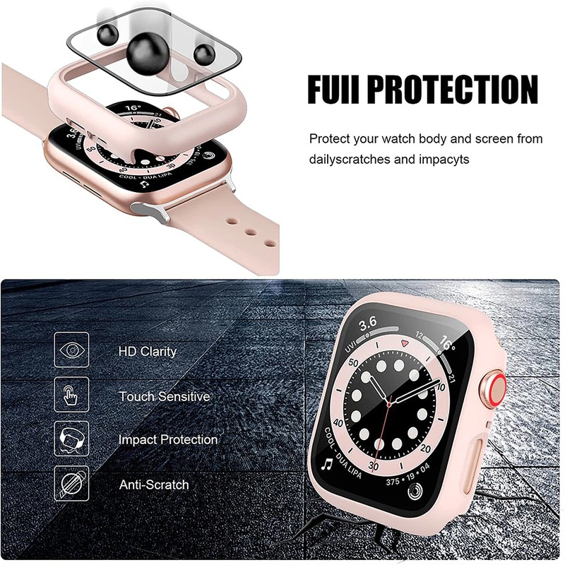 Conception 2 en 1: étui PC Durable intégré mince HD clair protecteur d'écran en verre trempé couverture complète de l'écran et des bords. Tout autour protège votre Apple Watch contre les rayures, les chocs et les chutes accidentelles.