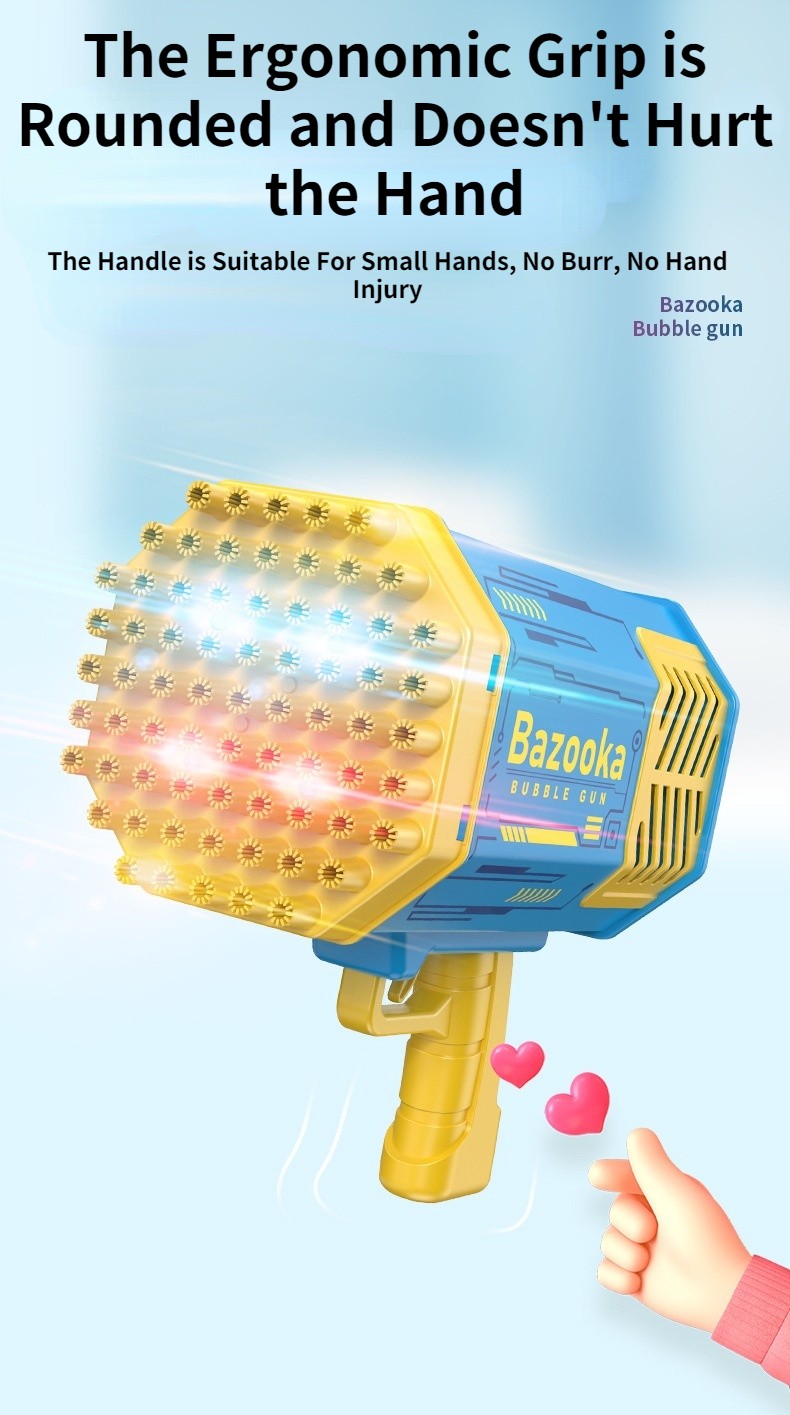 -Conception innovante du pistolet à bulles: le lanceur de fusée à bulles a 69 trous à bulles, soufflant des milliers de bulles colorées à chaque minute. Avec une lumière colorée. Plus drôle dans la nuit