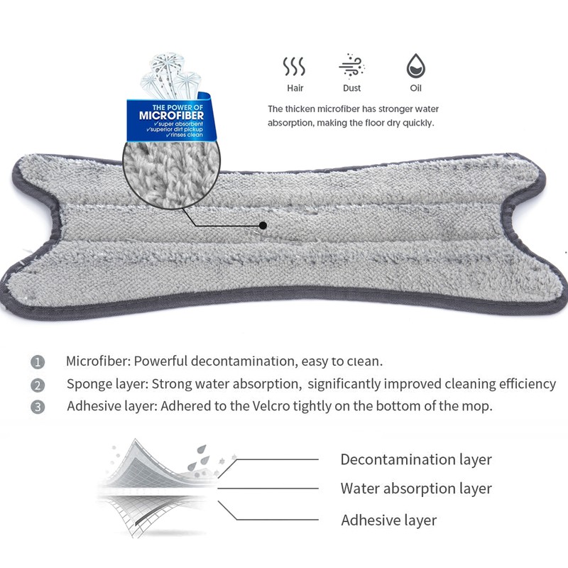 3 tampons de remplacement en microfibre: y compris 3 tampons d'essuyage en microfibre doux, réutilisables et lavables qui absorbent l'eau rapidement, éliminent facilement les cheveux et les taches d'huile. Utiliser humide pour un nettoyage en profondeur ou à sec pour enlever la poussière. Parfait pour la salle de bain, la cuisine, le salon et le bureau. Notre vadrouille polyvalente convient à tous les types de surfaces lisses telles que les carreaux, le bois, le bois franc, le stratifié, le béton, les sols en pierre et les fenêtres en verre.