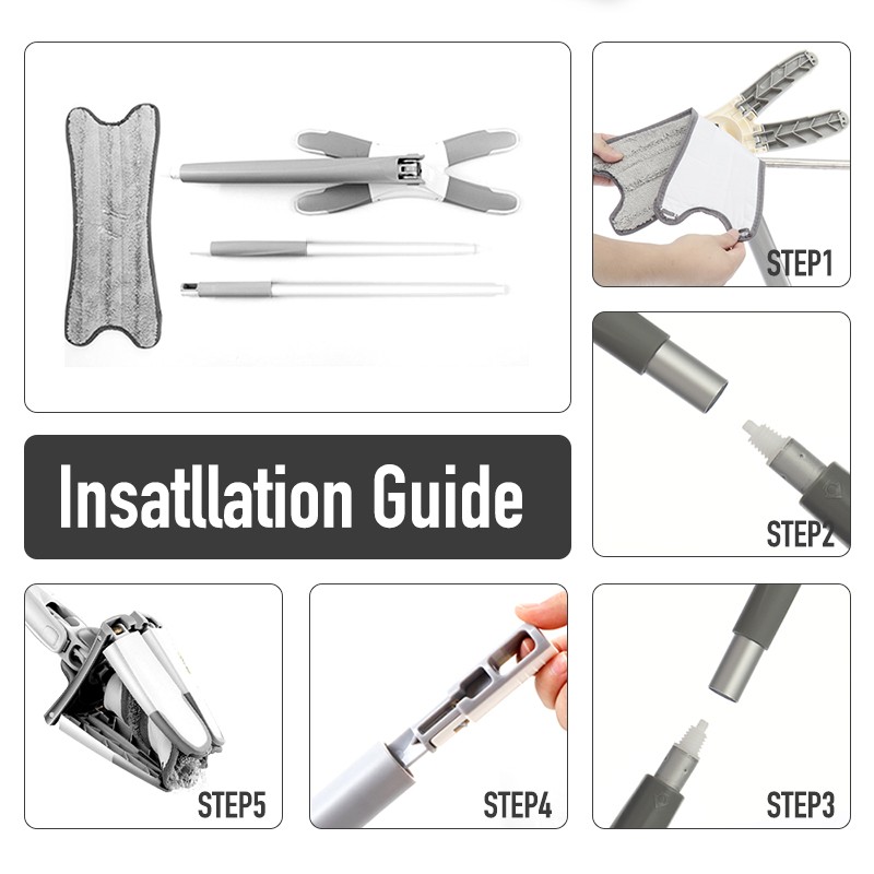 Facile à utiliser et peu encombrant: la barre de vadrouille et les tampons de vadrouille sont amovibles pour un nettoyage en profondeur. L'installation est simple et ne prend que quelques minutes. La vadrouille auto-essorante compacte et légère prend peu de place dans la maison, que ce soit dans la cuisine, la salle de bain ou le garage. Le crochet de suspension intégré dans le haut de la poignée permet un rangement facile.