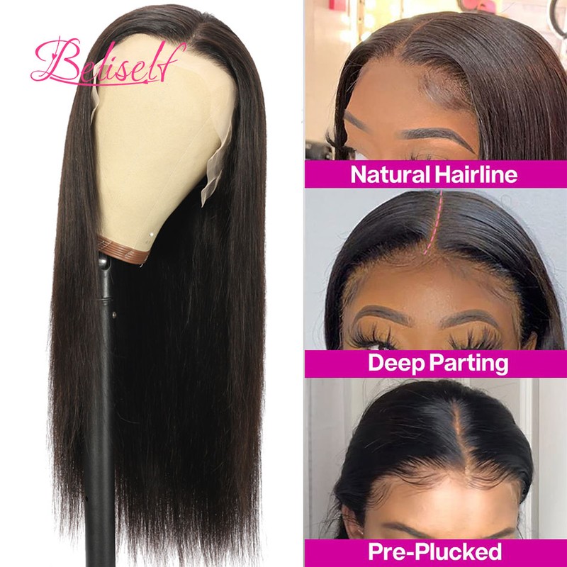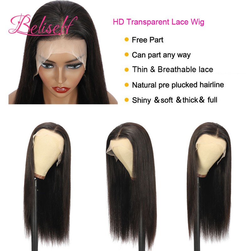 Perruque Lace Frontal Wig 360 Naturelle Lisse – Beliself, Cheveux Humains, 5X5 13X4/13X6 Lace Frontal Wig, Transparent Hd