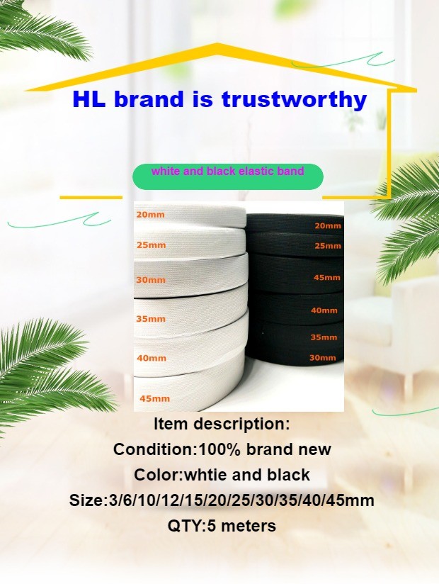 Hl – Bandes Élastiques En Nylon Blanc/Noir, 3-5 Mètres, 3/6/10/12/15/25/30/35/40/45/50/60Mm