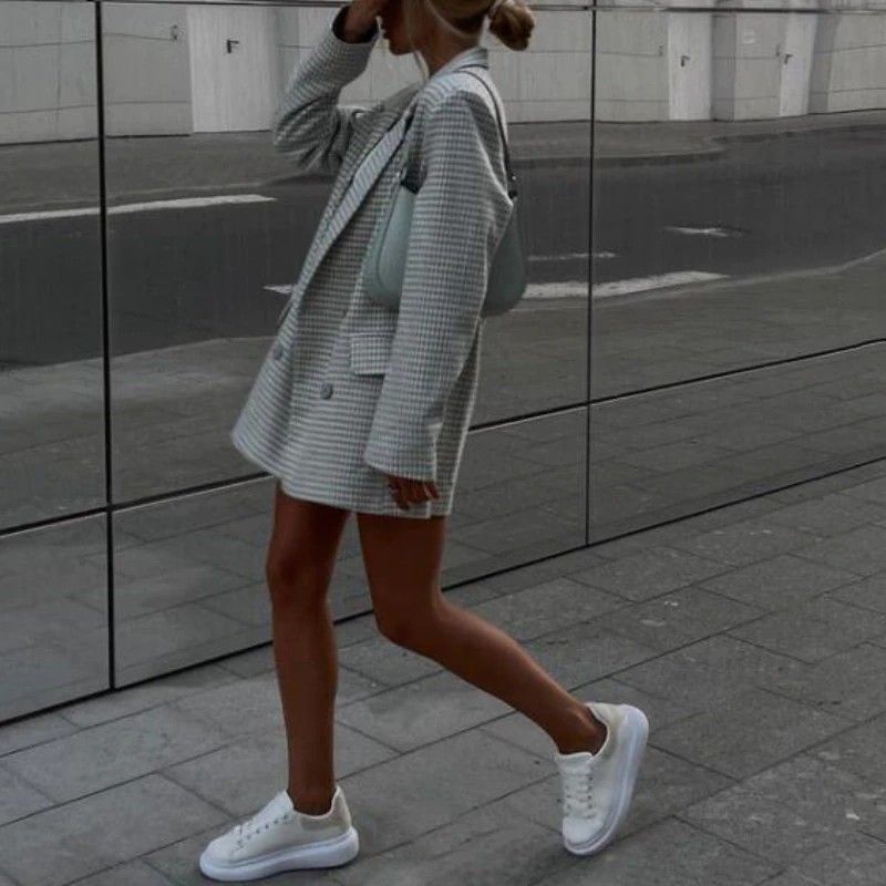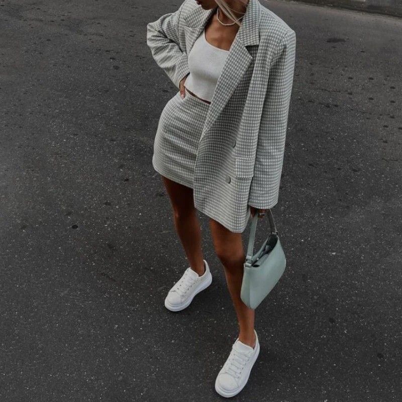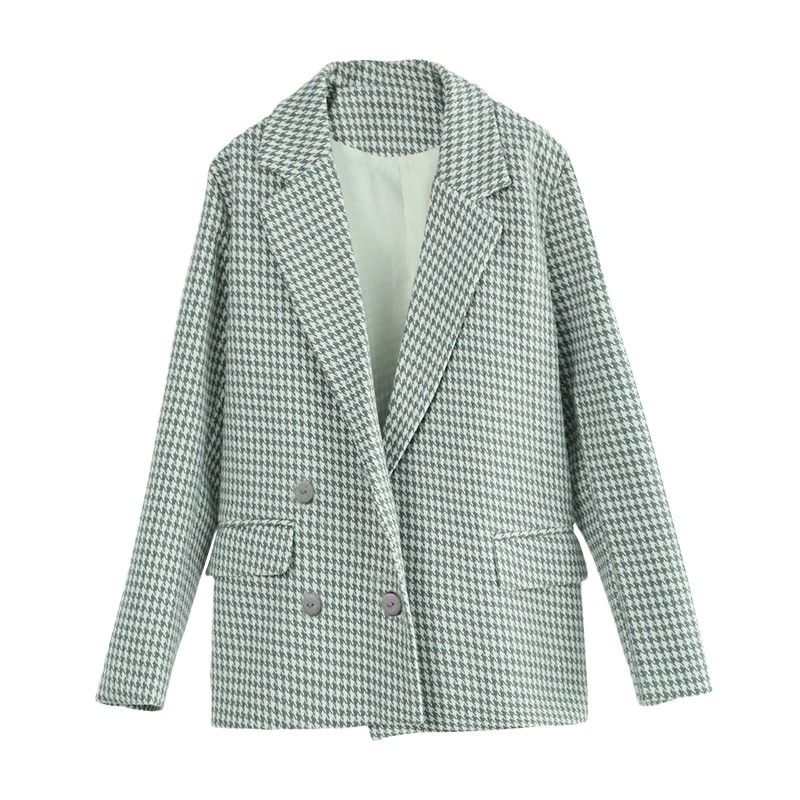Holiwind – Blazer Élégant Et Chic, Pied-De-Poule, Costume Surdimensionné Gris À Carreaux Poches À Double Boutonnage Longue Texture Avec Boutons, Le plus récent