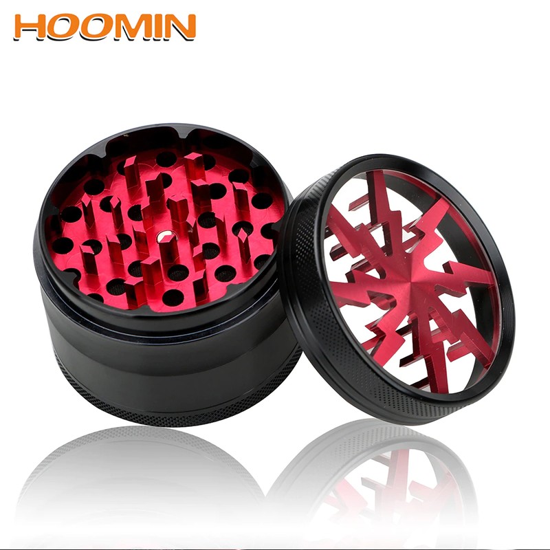 Hoomin – Coupeur D'Herbe À Fumer En Alliage D'Aluminium, Transparent, En Forme D'Éclair De 63Mm Et À 4 Couches, Nouveauté