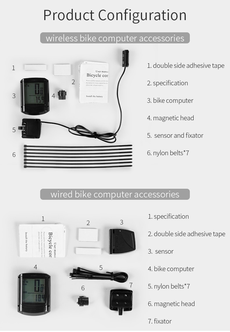 1. Ordinateur de vélo 2. Ceintures en nylon * 7 3. Tampon éponge absorbant les secousses