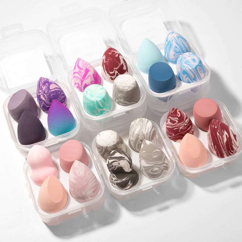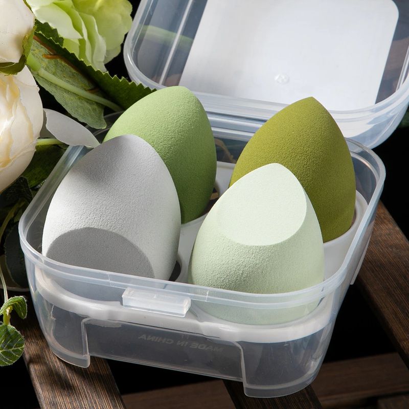 Éponges à maquillage avec boîte de rangement pour femme, outil de beauté, accessoire durable, pour fond de teint et anti cernes, 4 pièces,