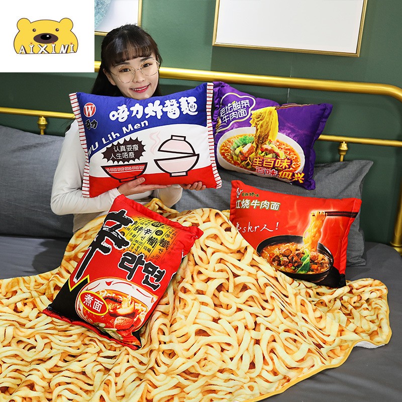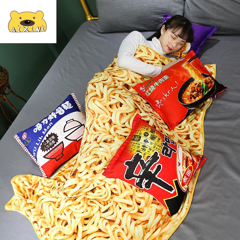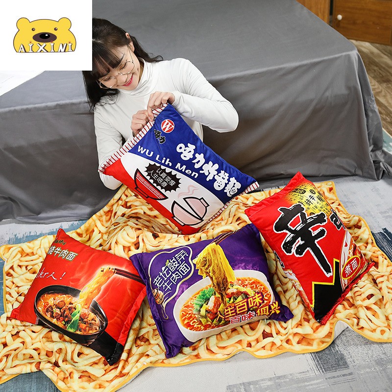 Couverture Kawaii Simulation de nouilles instantanées oreiller en peluche avec couverture en peluche de bœuf frit nouilles cadeaux oreiller en peluche nourriture en peluche jouet oreiller de nouilles