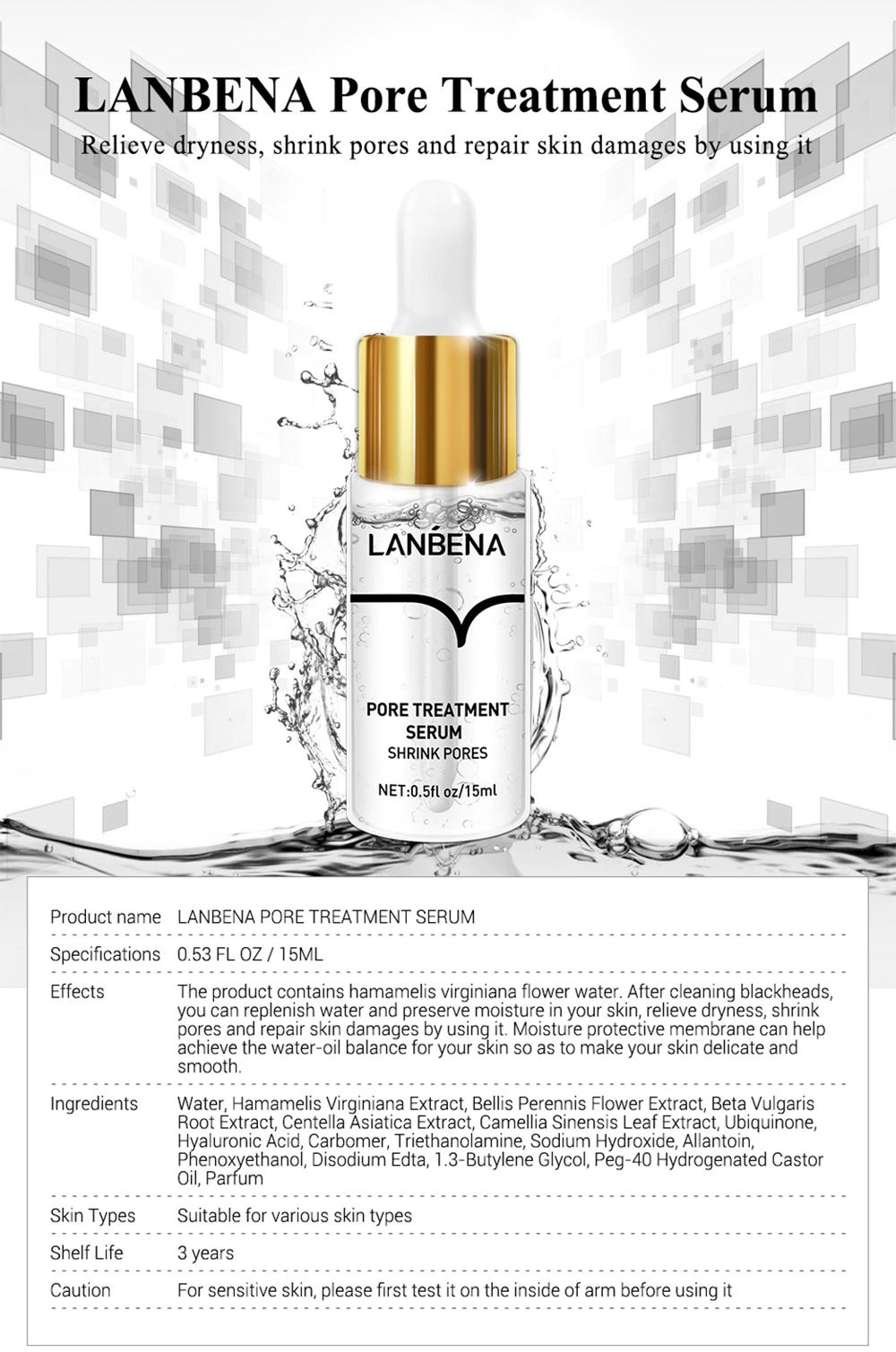 Lanbena – Sérum traitement des pores, essence rétrécissement, soulager sécheresse, contrôle de l'huile, raffermissant, hydratant, réparateur, soin pour peau lisse,