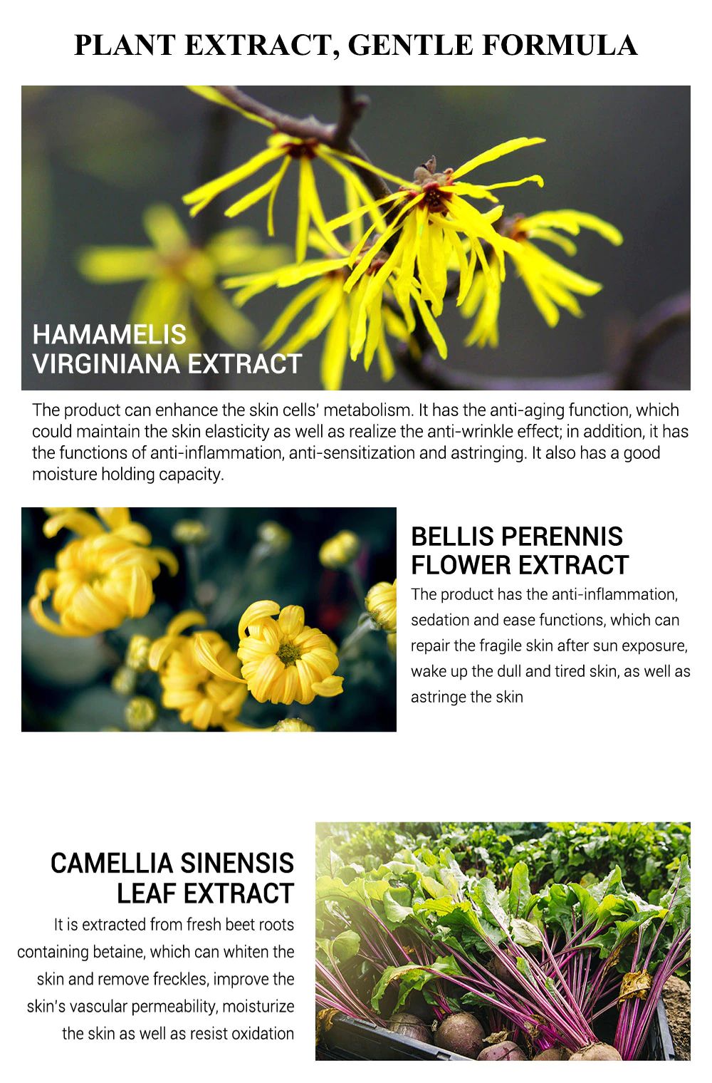 Ingrédient: Extrait de Hamamelis Virginiana, extrait de fleur de Bellis Perennis, bêta Vul