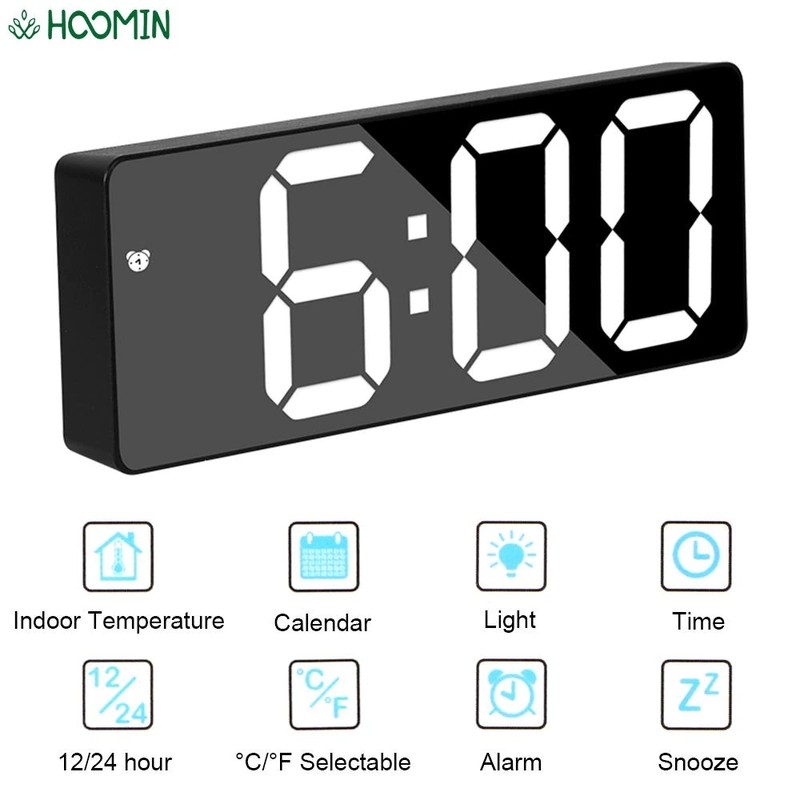 Horloge électronique de bureau LED Snooze acrylique/miroir, réveil, commande vocale, affichage de l'heure et de la température, numérique