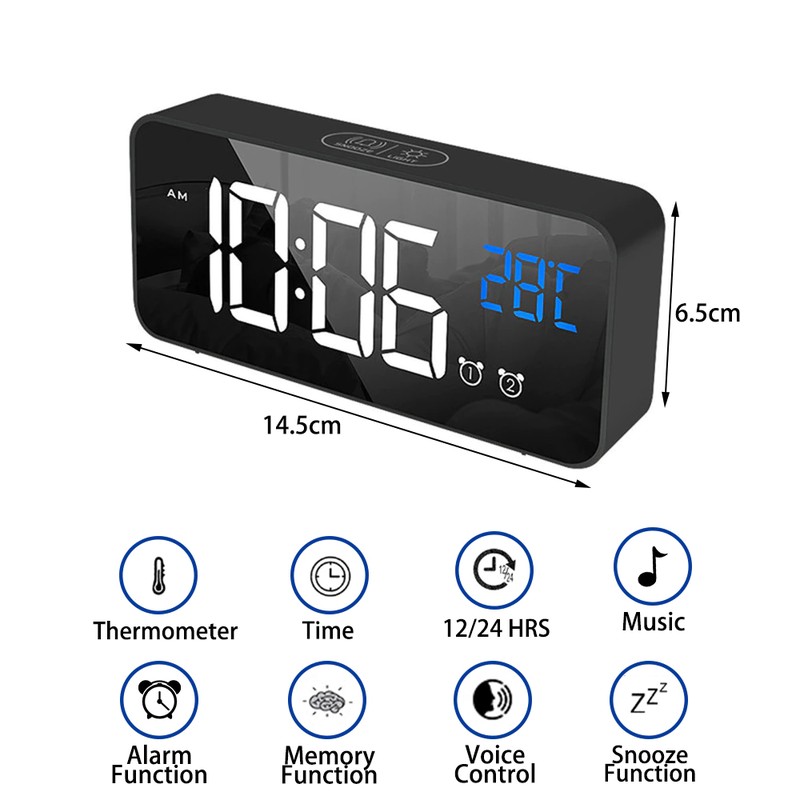 Double fonction de réveil: 2 réveils peuvent être réglés à tout moment séparément, également régler le mode snooze.
