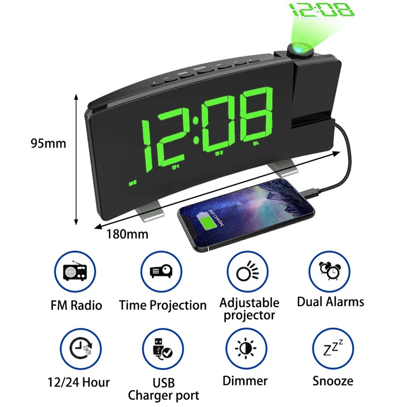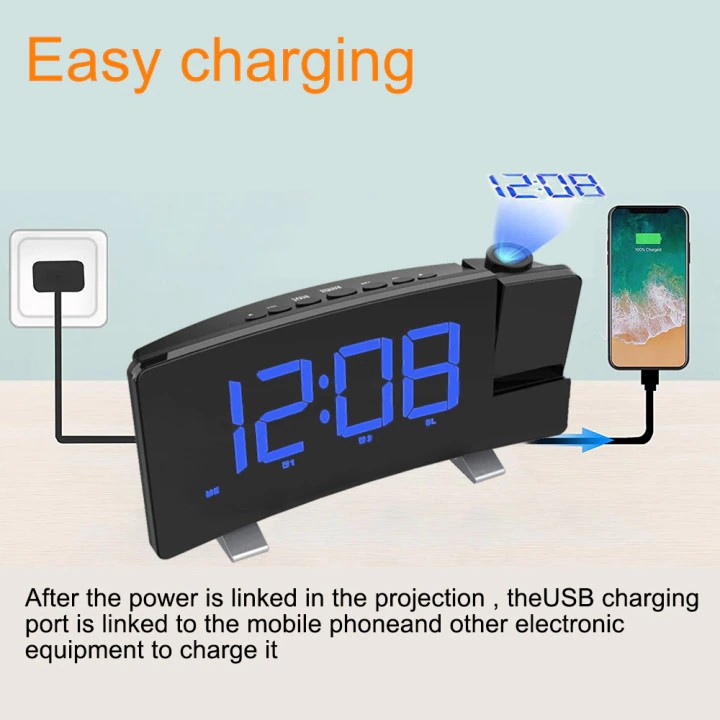 Réveil De Table À Projection Numérique Led, Horloge Électronique, Avec Diffusion De Radio Fm Projecteur L'Heure, Pendule Chevet De Chambre À Coucher