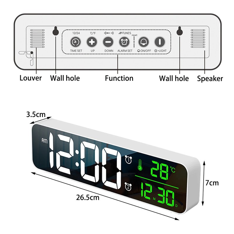 Grand affichage numérique led: l'heure, l'humidité et la température peuvent être facilement lues.