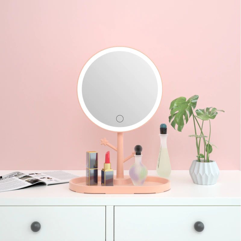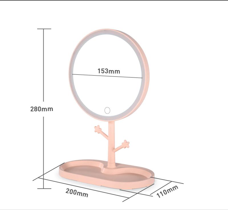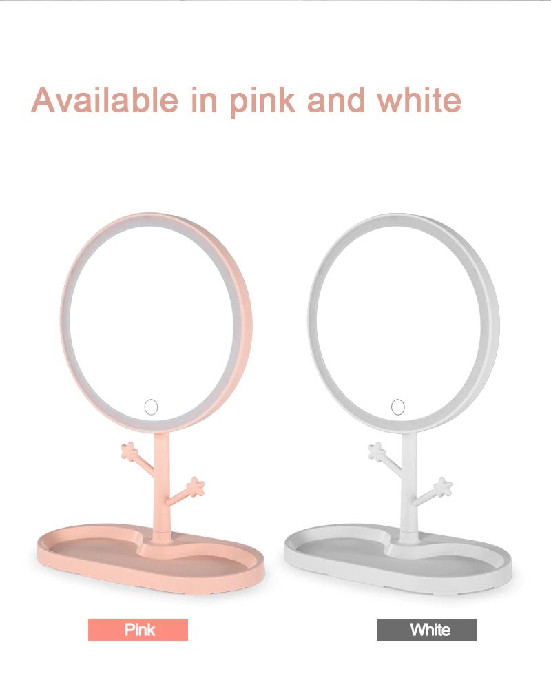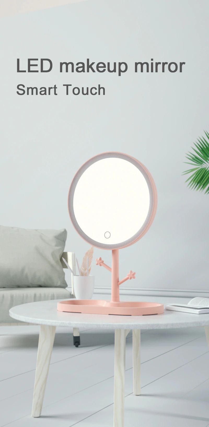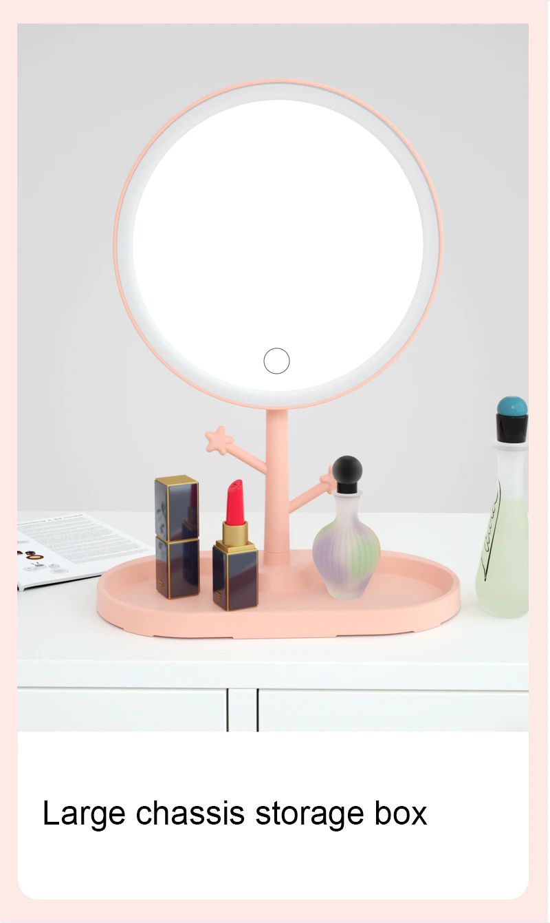 Miroir de maquillage LED avec lumière pour femmes, lampe de rangement de maquillage, miroir de vanité de bureau rond, miroirs cosmétiques, cadeaux de noël pour femmes