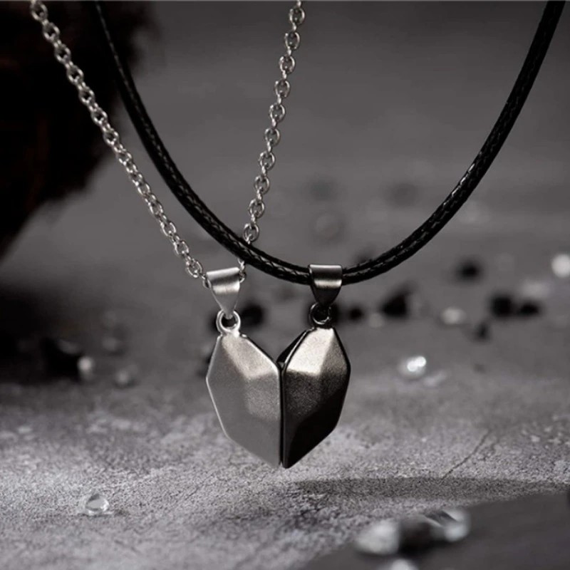 Aimant D'Amour Attire Les Couples, Collier Et Bracelet, Une Paire De Pierres De Souhait Simples Et Créatives Pendentif En Forme Cœur, Chaîne De Clavicule 2 Pièces/Ensemble