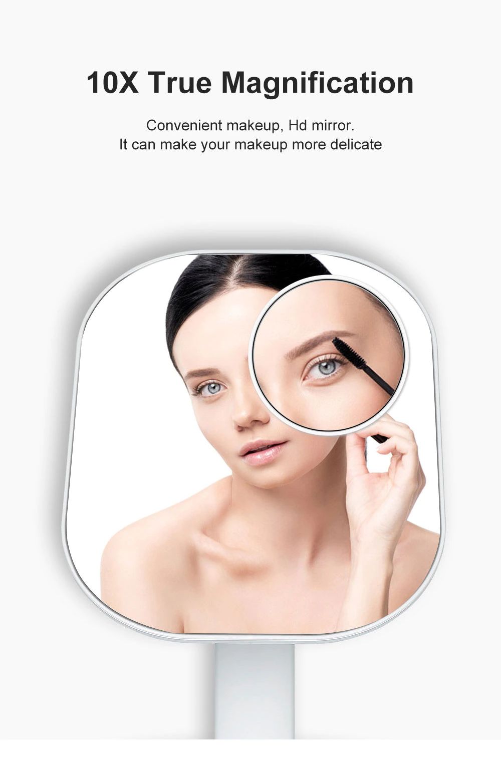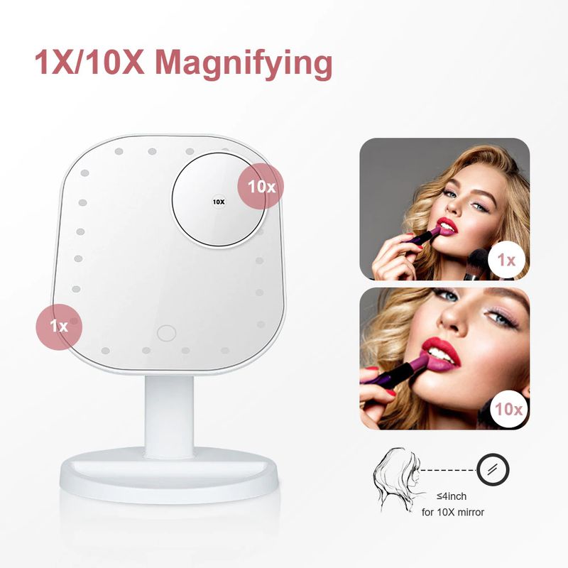Miroir De Maquillage Multifonction Portable Avec Grossissement 10X, Contrôle Tactile, Lumières Led Réglables Rotation À 180 Degrés, Cadeau Pour Fille