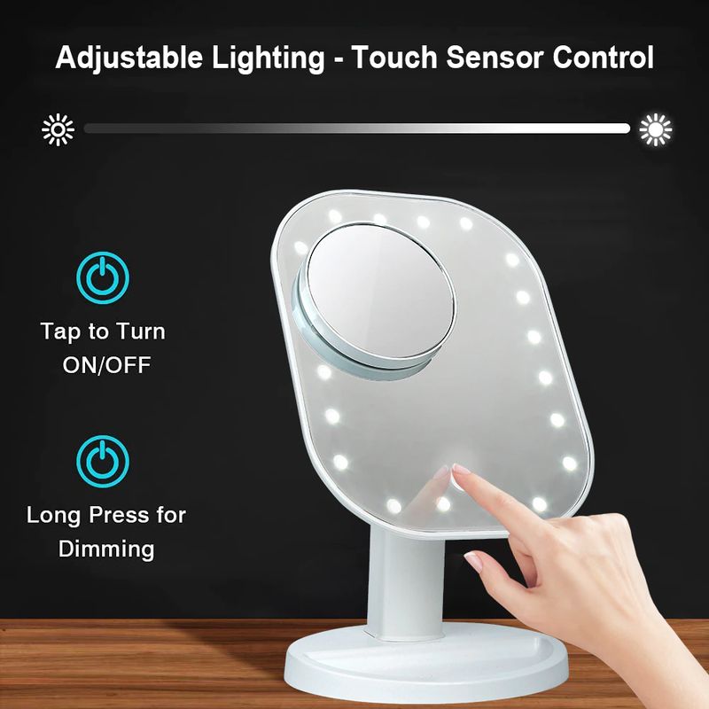 Miroir de vanité de maquillage avec lumières LED réglables écran tactile miroir cosmétique grossissant 10X miroirs de beauté de bureau multifonctions