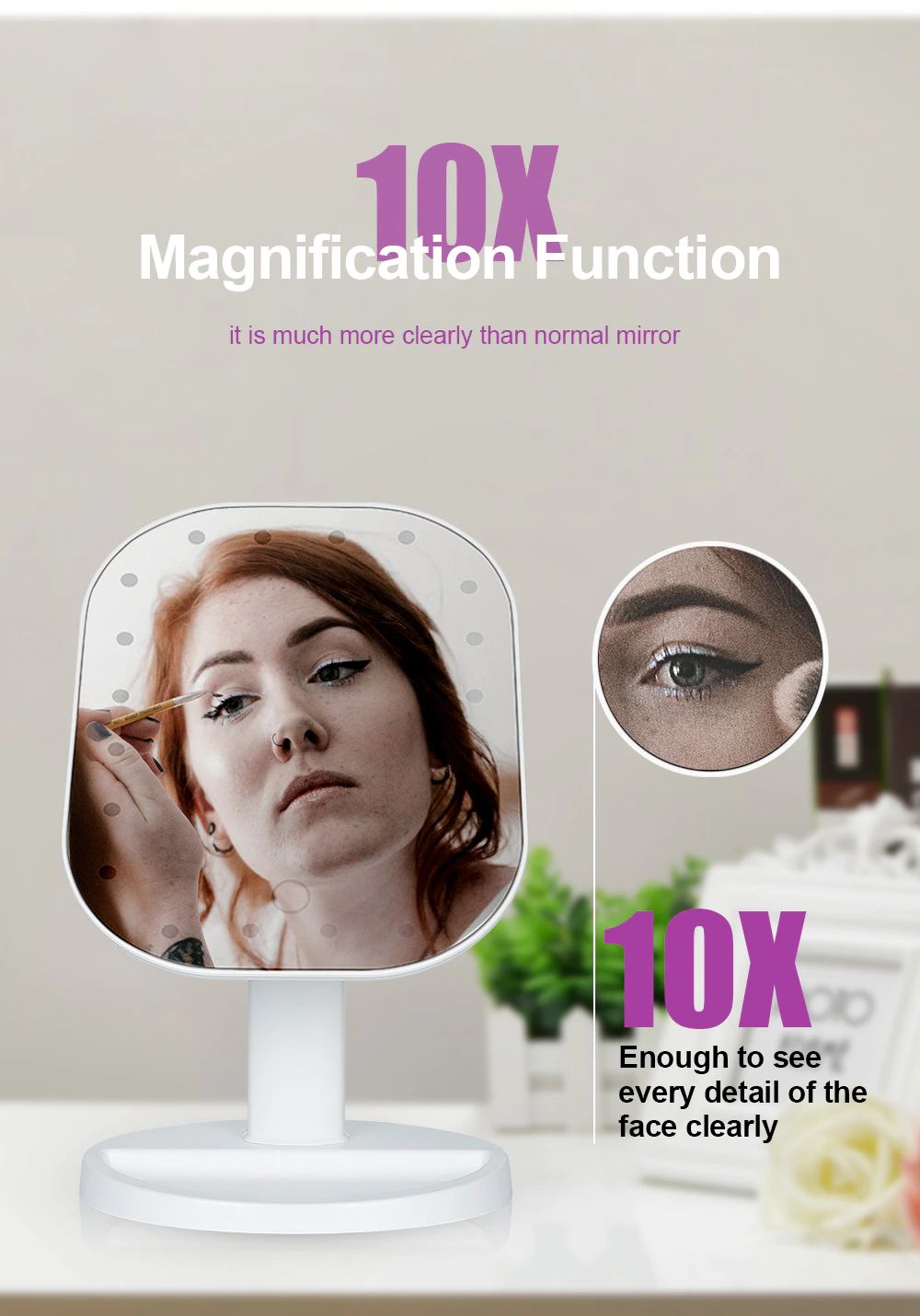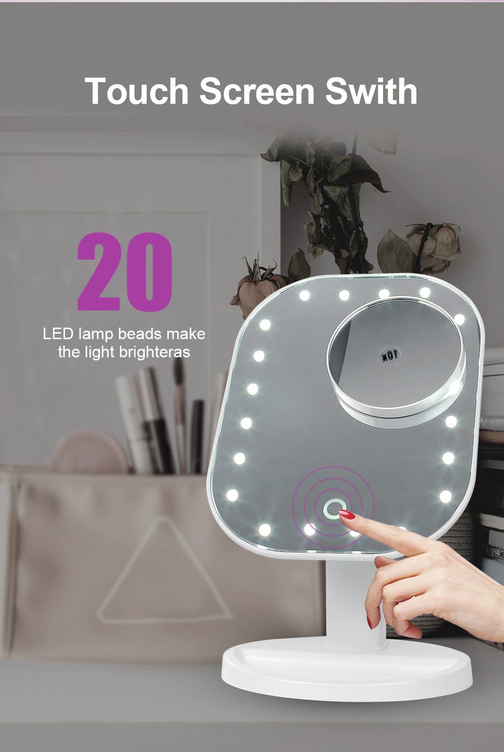 4. 20 lumières LED intégrées, il est pratique de toucher le maquillage dans les endroits peu éclairés.