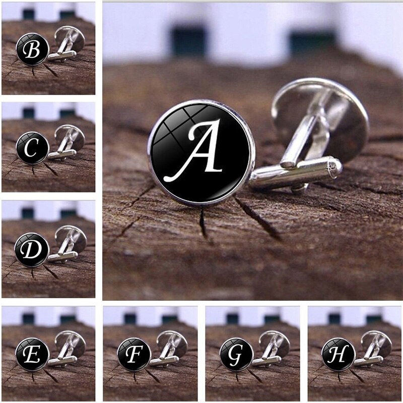 Boutons De Manchette Avec Lettres De L'Alphabet Pour Hommes, Simples, Couleur Argent Pour Chemise Masculine Cadeaux De Mariage, A-Z