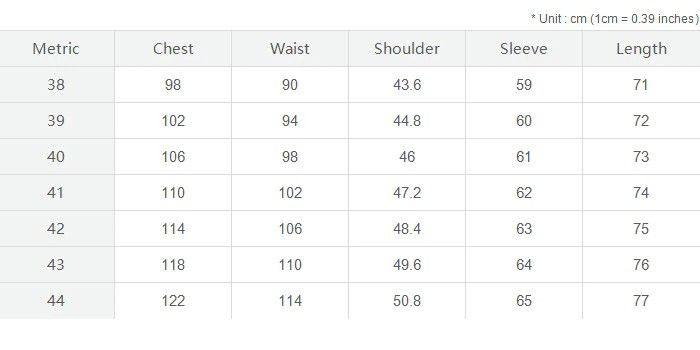 2) normalement, la taille de la chemise doit être supérieure à votre taille. Vous pouvez vérifier votre chemise habituelle. Si votre tour de poitrine est de 100cm, nous vous suggérons de choisir une chemise de 104cm ou 108cm.