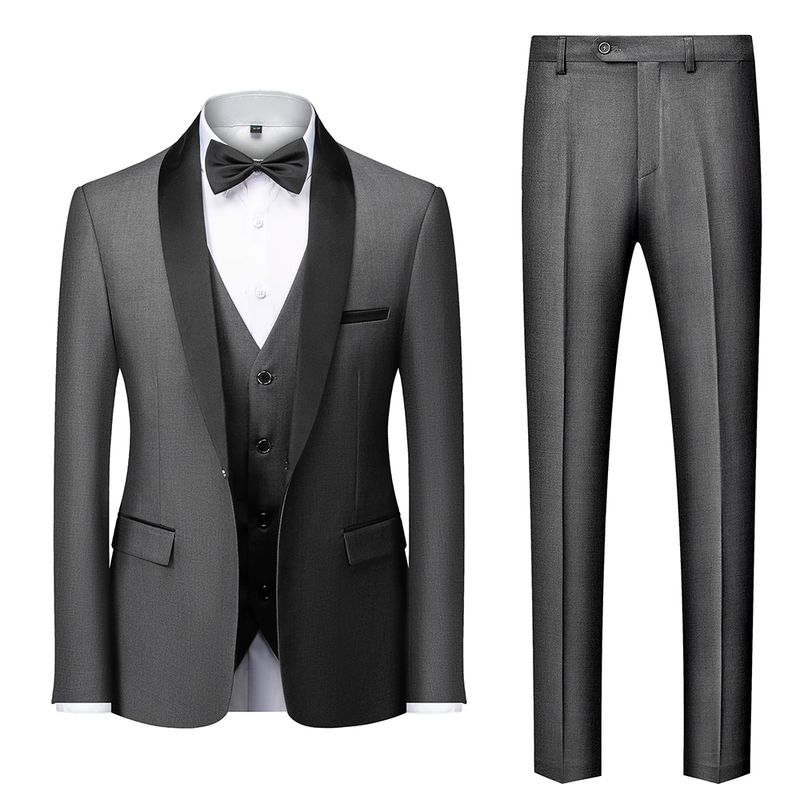 Ensemble 3 Pièces Pour Homme, Veste Et Pantalon À Col Bloc De Couleur, Décontracté, Pour Mariage Et Affaires