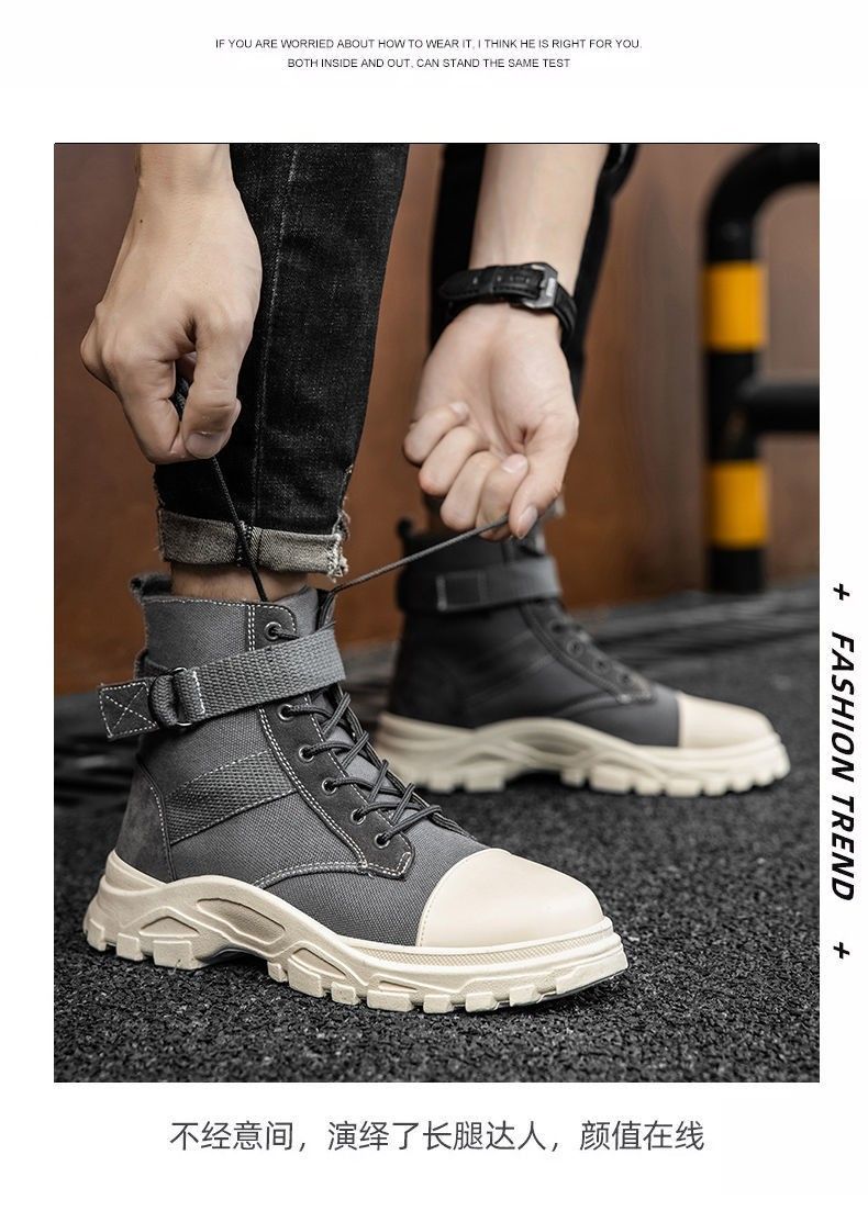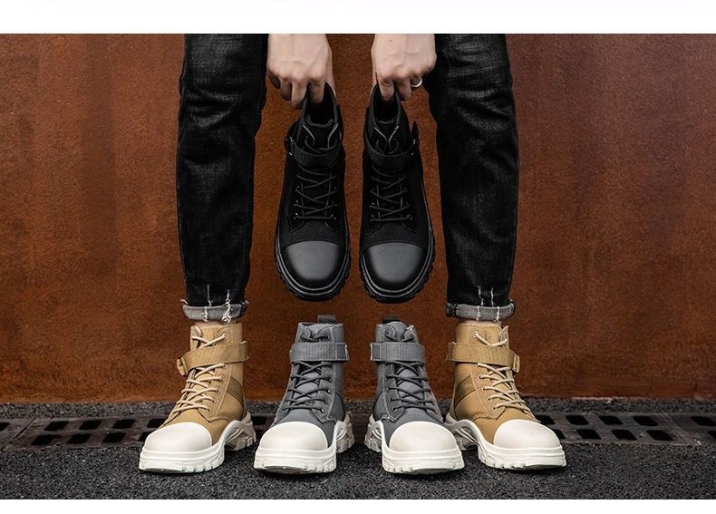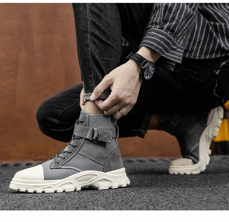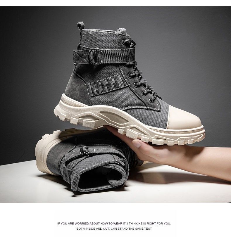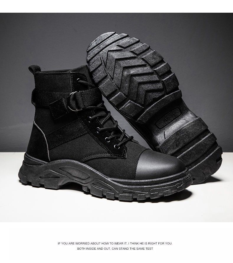 Bottines Militaires En Toile Pour Homme, Chaussures D'Extérieur, Les montants Décontractées Noires, Chelsea