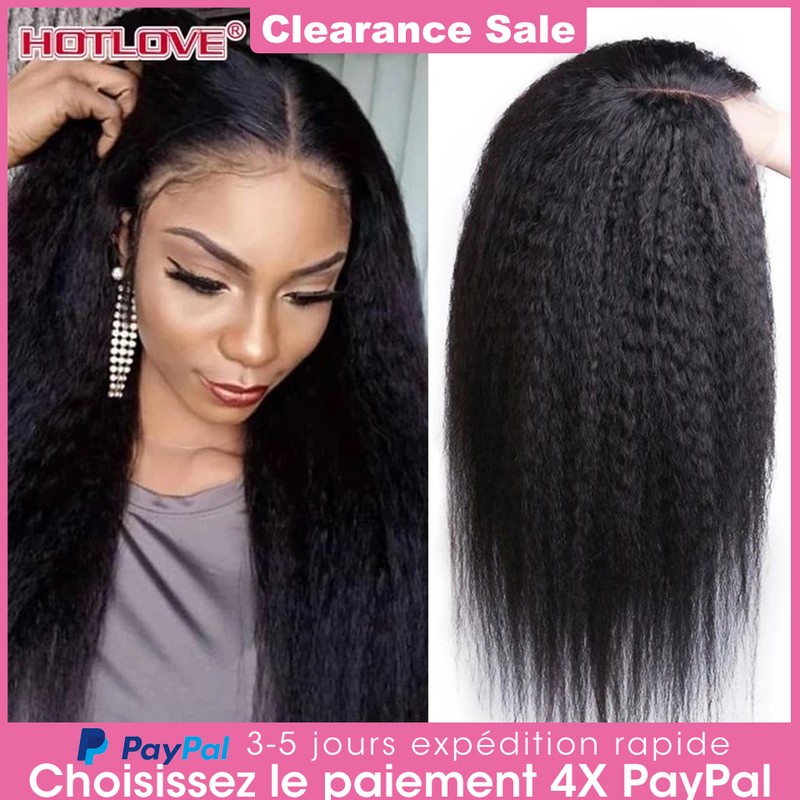 Perruque Lace Frontal Wig péruvienne Remy naturelle crépue lisse 13x1, 28 pouces, densité 180%