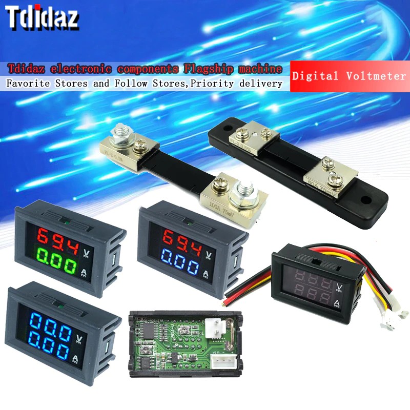 Mini Voltmètre Numérique, Ampèremètre, Dc 0-100V1A 10A 50A 100A Led Dc Double Affichage, Compteur De Courant Et Voltmètre Numérique