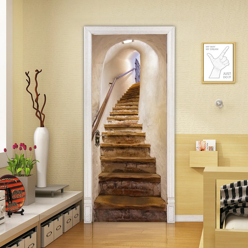 Autocollants Géométriques Modernes, Auto-Adhésifs En Vinyle, Étiquette Murale En Forme D'Escalier Style Rétro, Décorations D'Intérieur Imperméables Imprimées De Paysages Naturels
