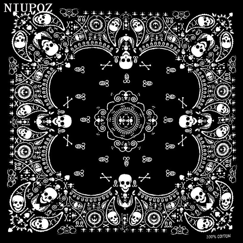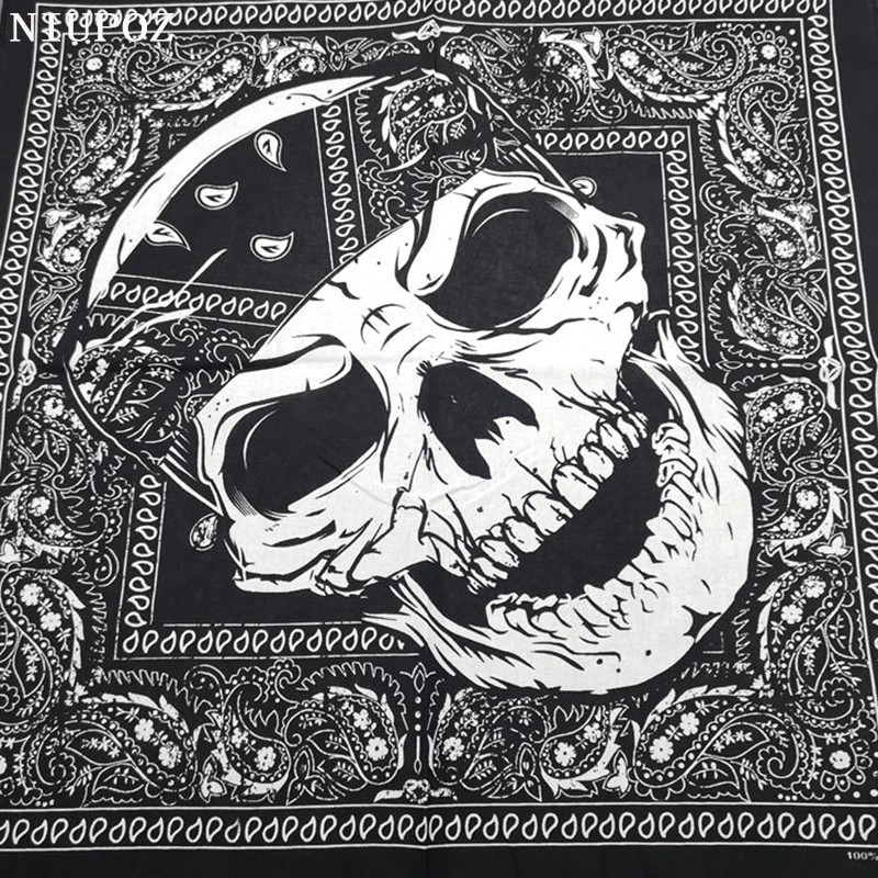 Bandana Hip Hop Mixte À Motif De Tête De Mort, Bandeau Tête En Coton À 100 %, Écharpe Carrée De Couleur Noire Pour Femmes Hommes, Garçons Et Filles