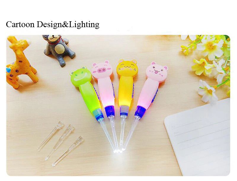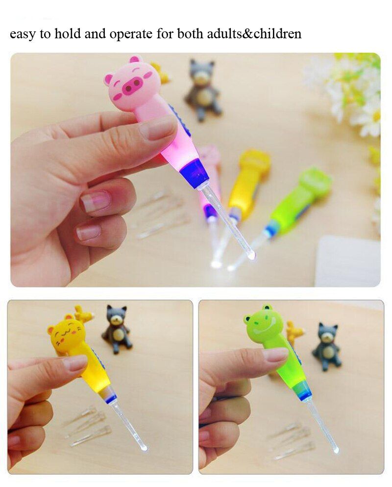 ABS à la mode pour adultes, enfants, utilisation tête remplaçable, éclairage, oreillettes, oreilles, kit d'outils de nettoyage de cire avec 3 têtes