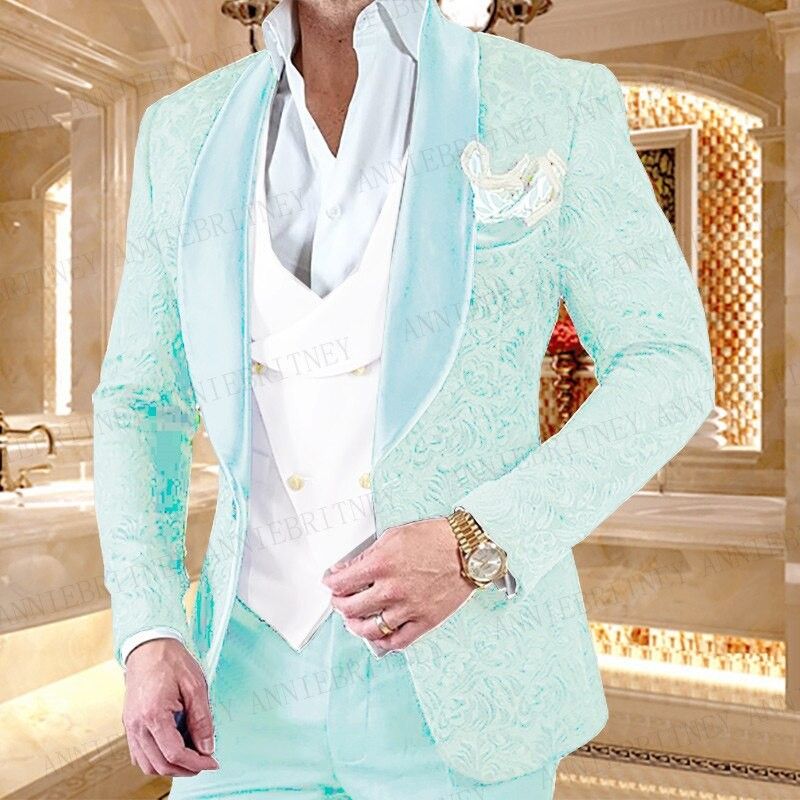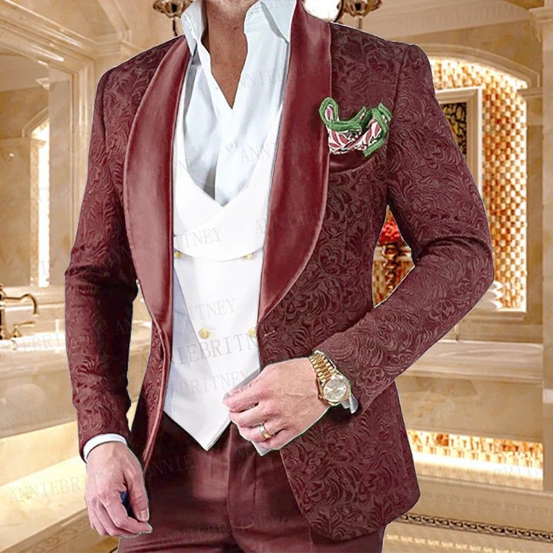 Costumes De Mariage De Luxe Pour Hommes, Rose, 3 Pièces Costume Marié Personnalisé Robe De Smoking Slim Fit Blazer Jacquard Double Boutonnage Ensemble Gilet Et Pantalon, Nouvelle Collection