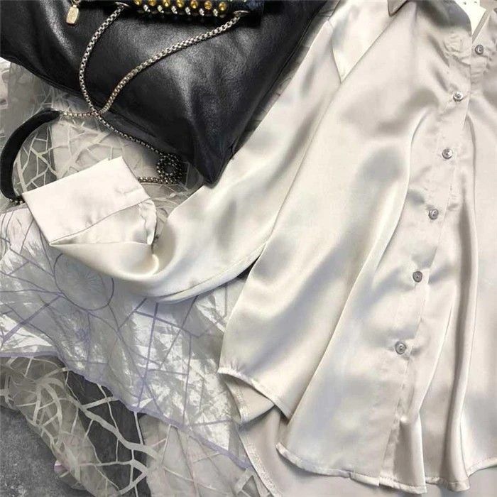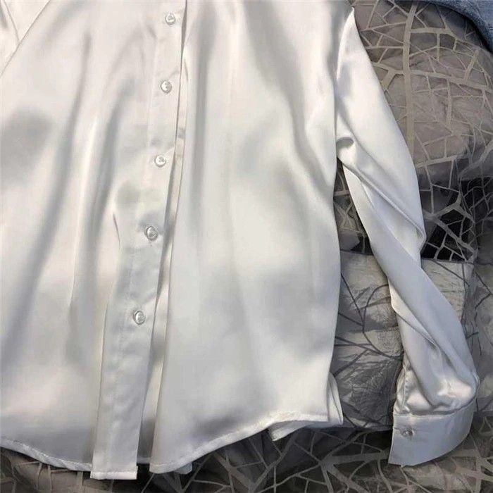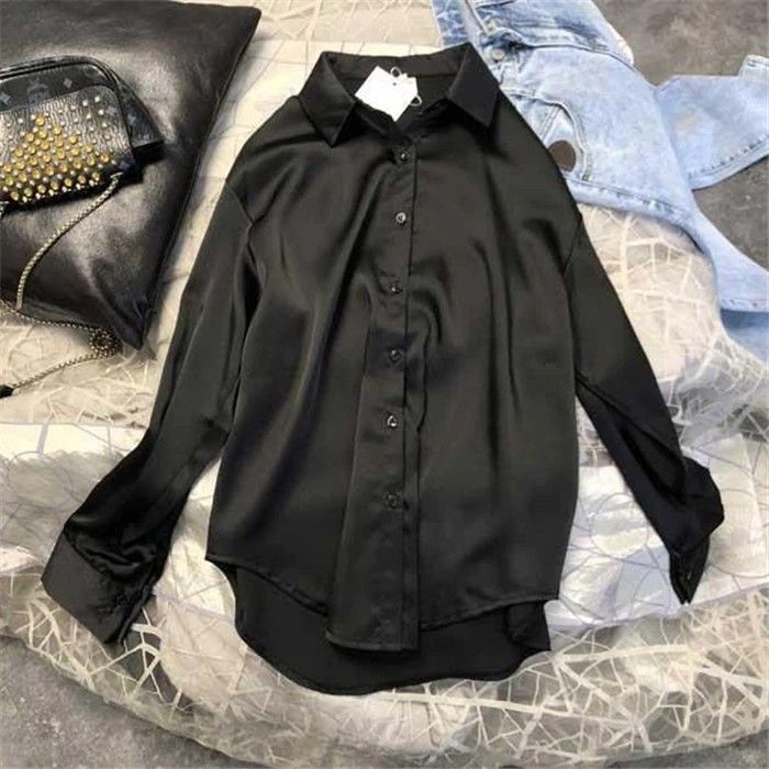 Chemisier En Satin À Manches Longues Pour Femme, Vintage, Surdimensionné Chemises De Rue Élégant Imitation Soie, Nouvelle Collection Printemps Automne