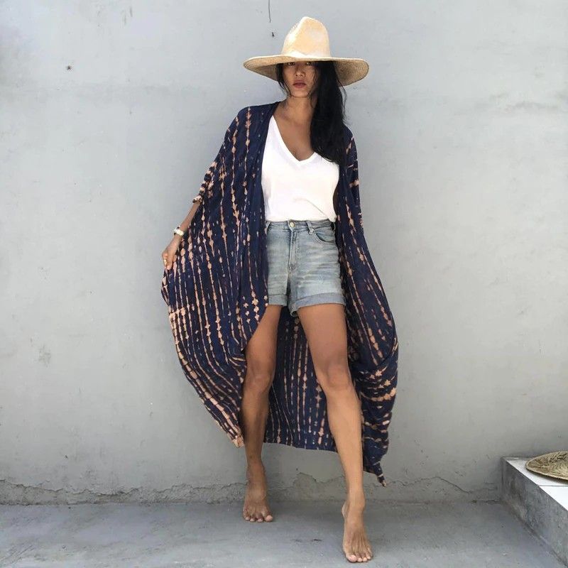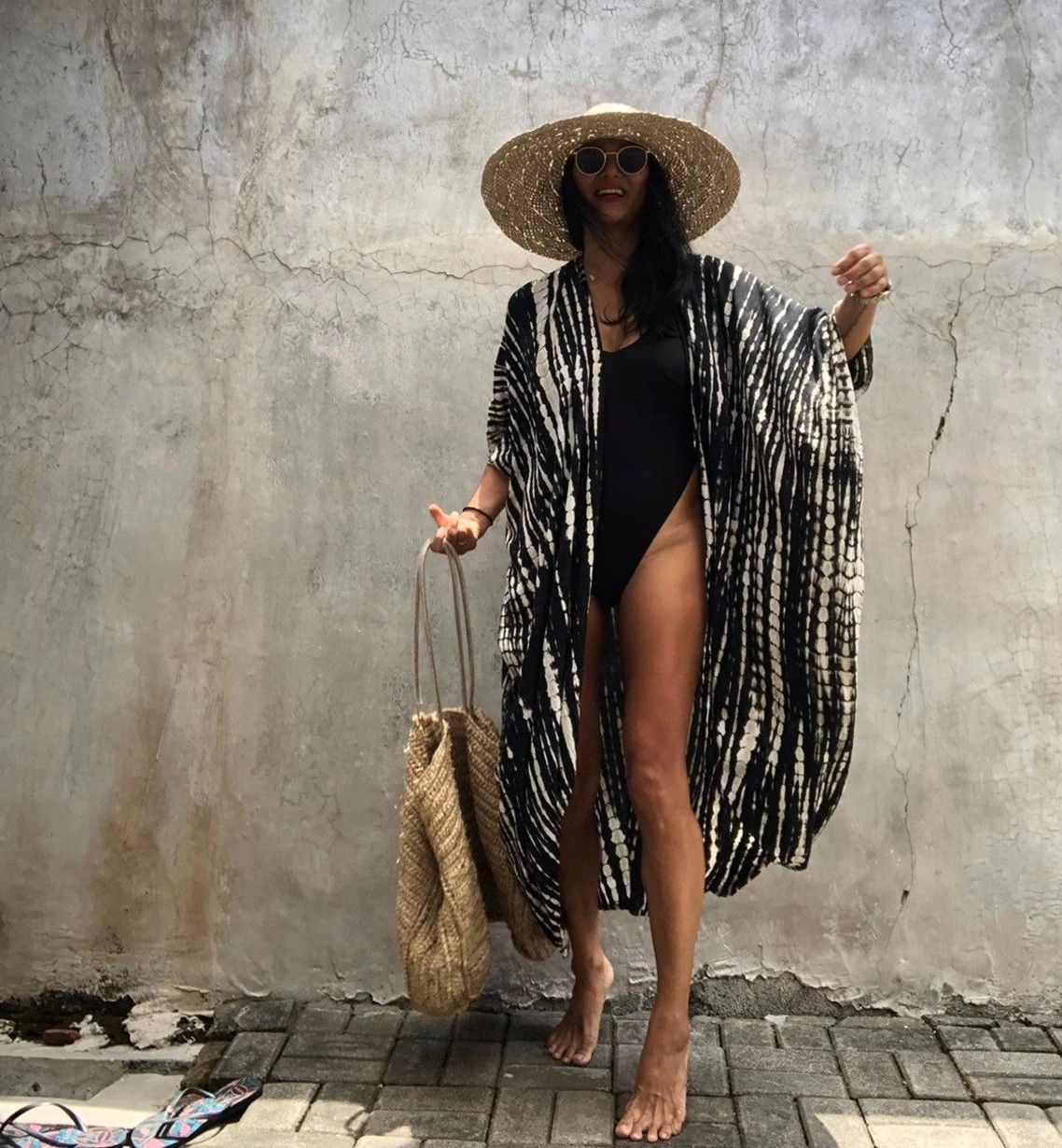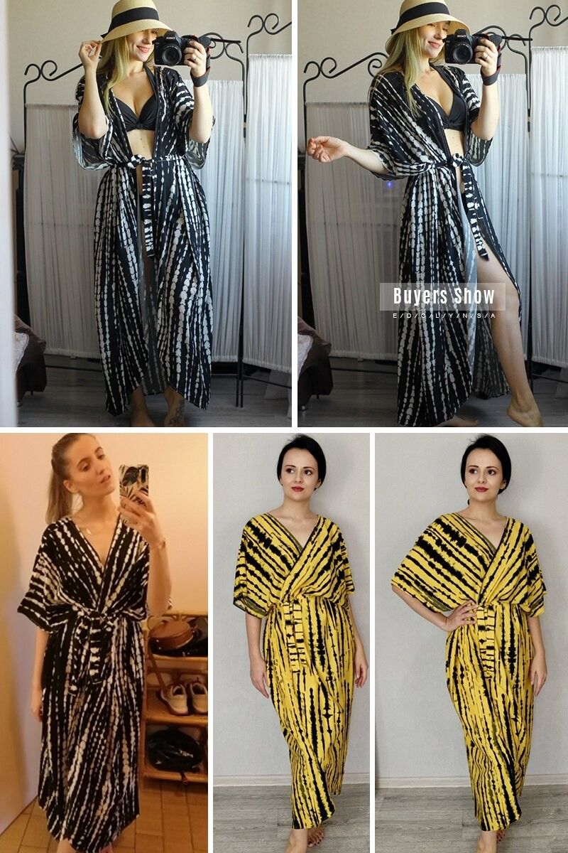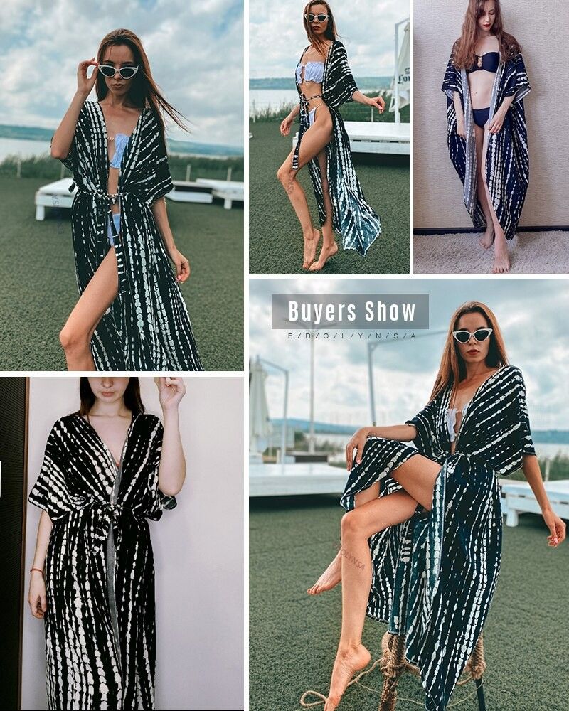 Cacher Maillot De Bain Rétro Rayé Pour Femmes, Kimono, Noir Grande Taille Pour L'Été Vêtements De Plage Q1225, Collection Le plus récent