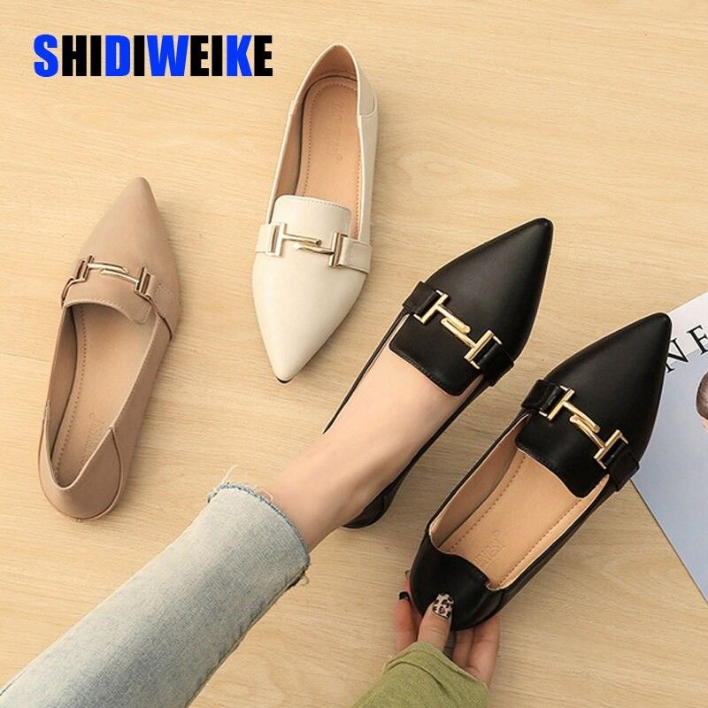 Mocassins À Bout Pointu Pour Femmes, Chaussures Plates Noires, Bateau Peu Profond Printemps Le plus récent, Ab044