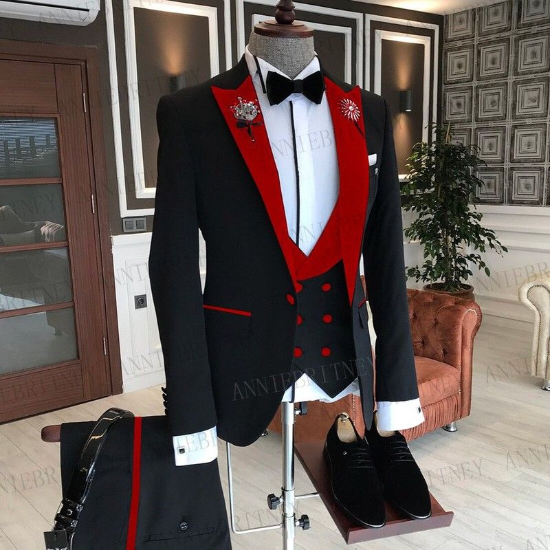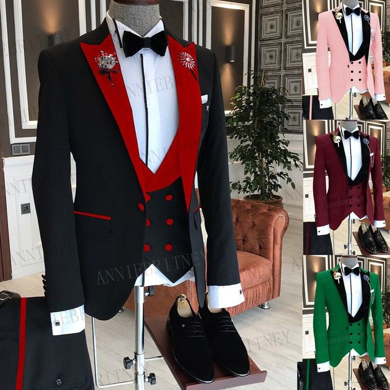 Costume 3 Pièces Pour Homme D'Affaires, Veste Personnalisée, Costume De Mariage Smoking Rouge En Velours Blazer À Revers À La Mode, Le plus récent
