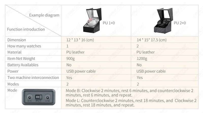 Le remontoir de montre fruité dispose d'une puce intelligente intégrée. Afin de protéger la montre contre un enroulement excessif, la machine ne fonctionnera pas tout le temps. Il s'arrêtera automatiquement et fonctionnera à nouveau. Les différents modes de fonctionnement sont différents, comme suit: