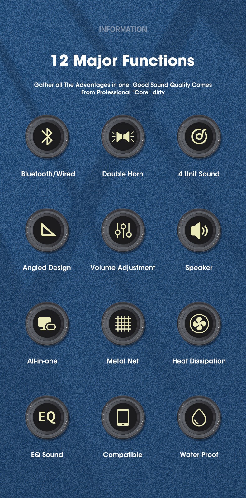 La couleur réelle de l'article peut être légèrement différente des photos présentées sur le site web en raison de nombreux facteurs tels que la luminosité de votre moniteur et la luminosité de la lumière. La surface du haut-parleur sera apposée avec notre propre étiquette de marque. Remplacer l'étiquette de ce modèle. Le produit est le même. Si vous ne comprenez pas, vous pouvez contacter le service client du magasin.