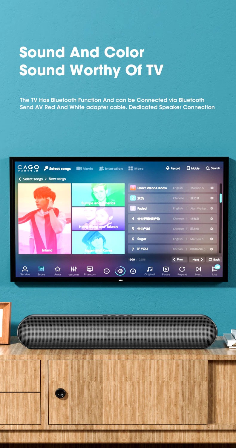 Le téléviseur a une fonction bluetooth et peut être connecté via bluetooth envoyer un câble adaptateur AV rouge et blanc, connexion dédiée aux haut-parleurs