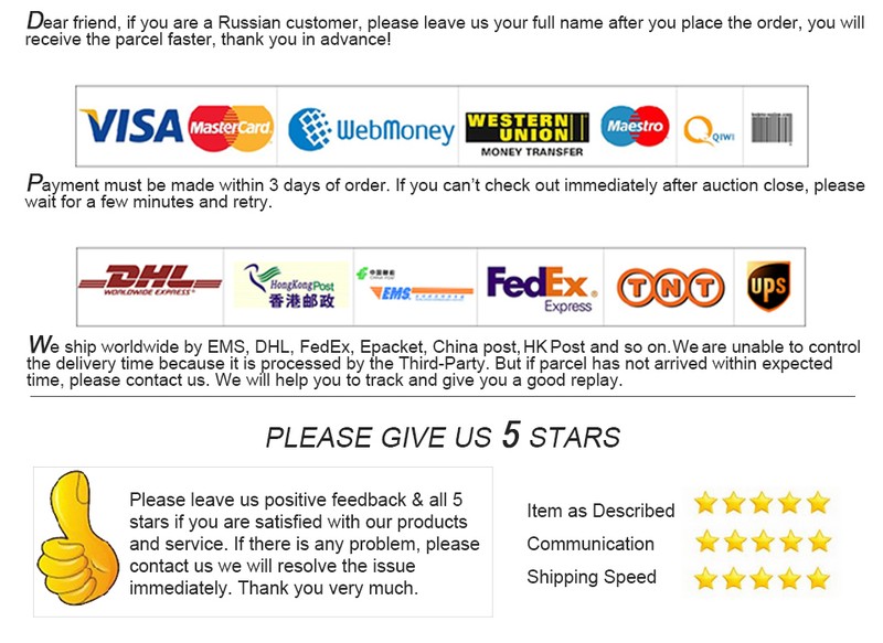2. Due to the different monitor and light effect, the actual color of the item might be slightly different from the color showed on the pictures. Thank you!