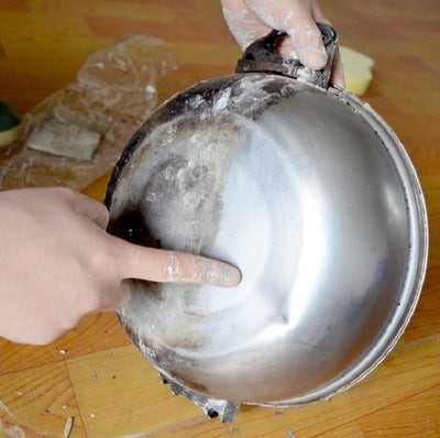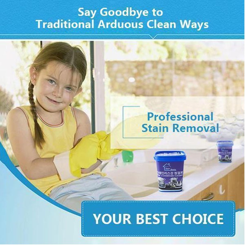 Nettoyeur puissant d'ustensiles de cuisine en acier inoxydable, pâte de nettoyage d'ustensiles de cuisine domestique, Pot de lavage, nettoyage de fond d'échelle (+ Gratuit éponge de nettoyage)