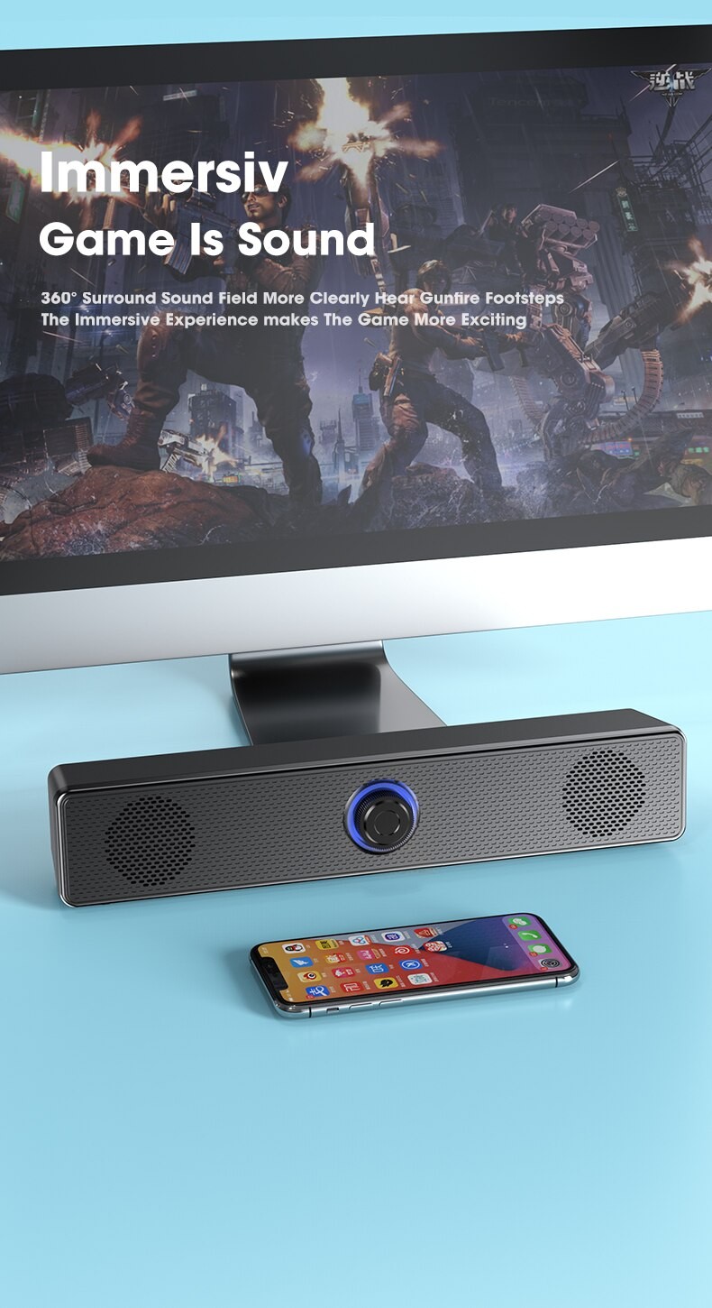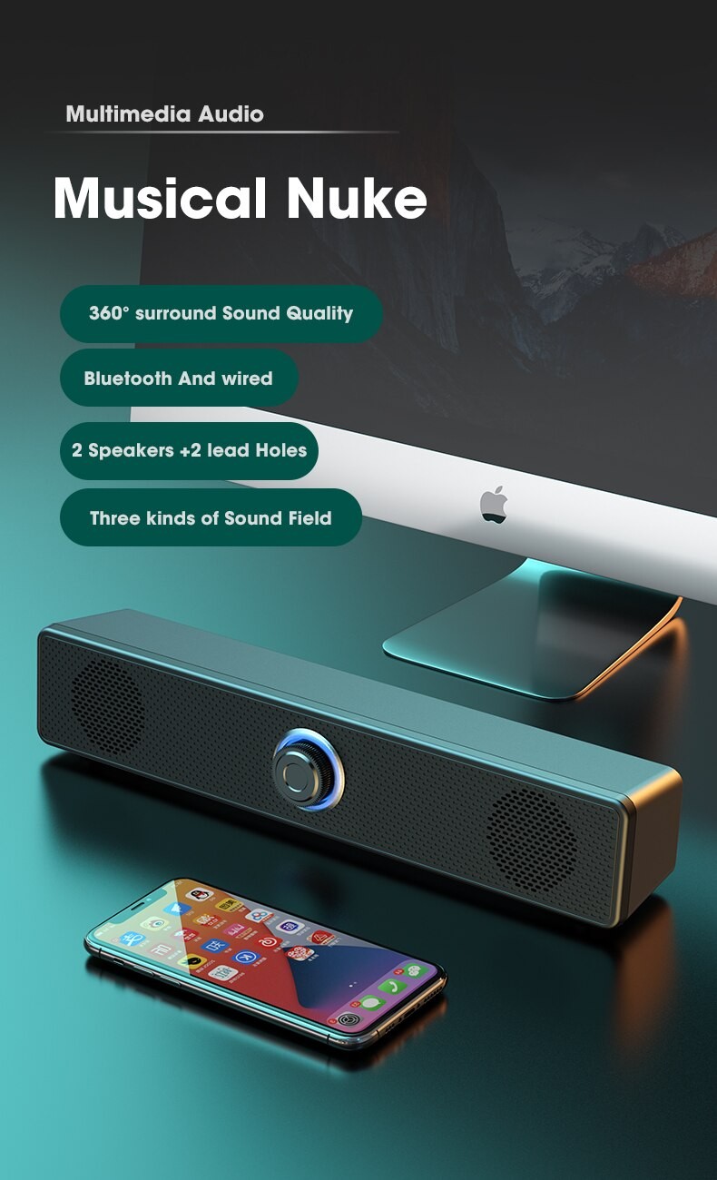 Niye – haut-parleur Bluetooth pour ordinateur de bureau, barre de son filaire sans fil, caisson de basses stéréo pour ordinateur Portable, AUX 3.5mm, barre de son Portable