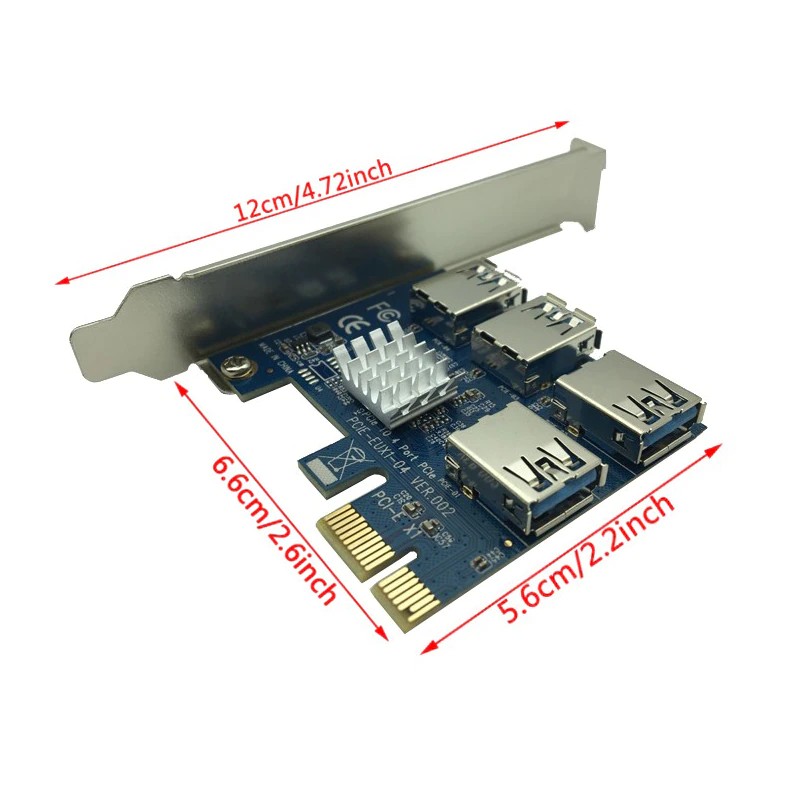 Adaptateur De Carte Pci-E Pour Btc Miner, Minage, Riser Spéciaux D'Extraction Usb 3.0 Convertisseur Pci-E Vers Pci-E 1 Turn 4 Pci — Express, Fente 1X Vers 16X