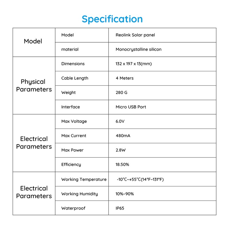 Reolink – Panneau Solaire Avec Câble De 4M, Pour Caméras À Batterie Rechargeable