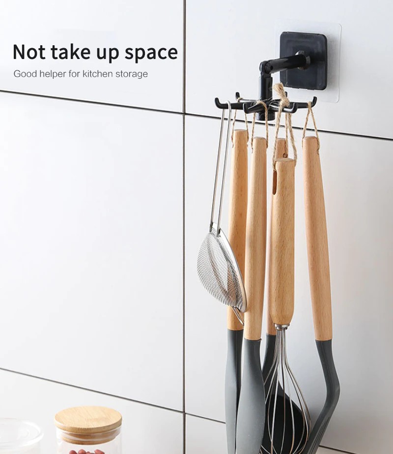Crochets Muraux Sans Poinçon À Six Mâchoires, Ustensiles De Cuisine Rotatifs À 360 °, Cintre De Pesage Surdimensionné Étagère Salle De Bain, Rangement Domestique Étanche
