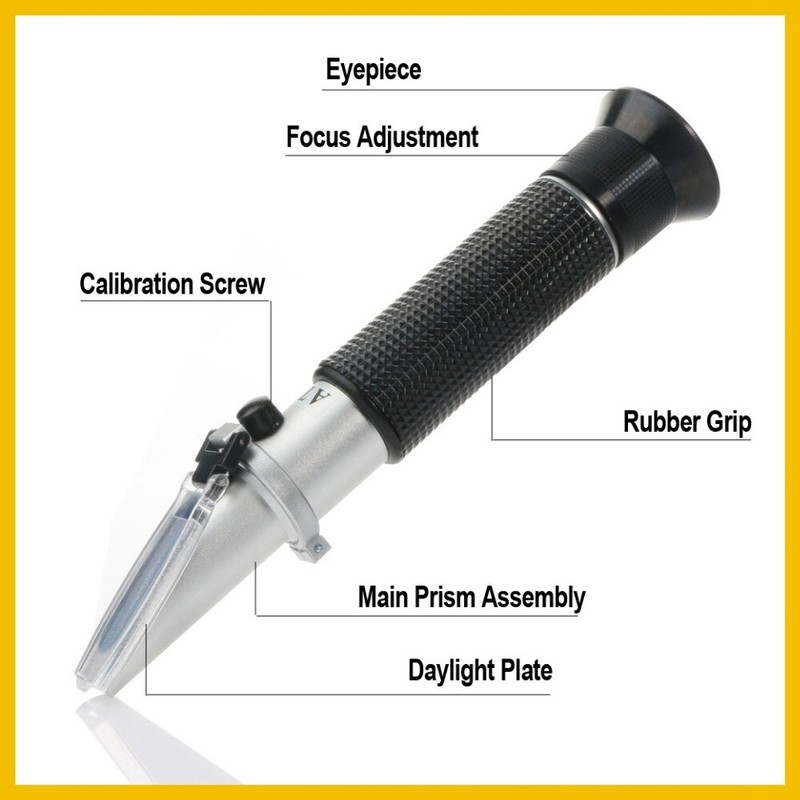 Facile et très pratique à utiliser. Placez quelques gouttes de liquide sur la partie optique du réfractomètre, couvrez le prisme (le liquide se répandra plus facilement sur le prisme), regardez à travers l'oculaire contre la lumière (focus, si nécessaire) et vous pourrez lire la valeur du résultat sur l'échelle.